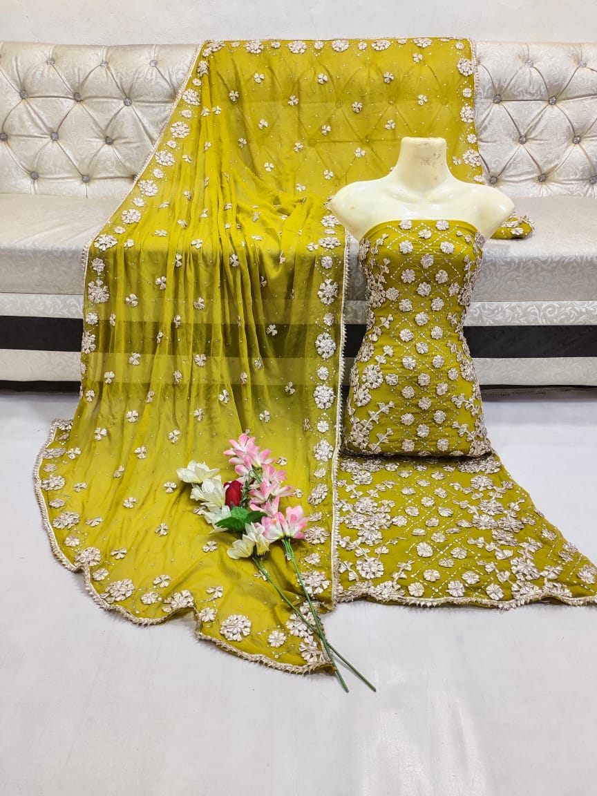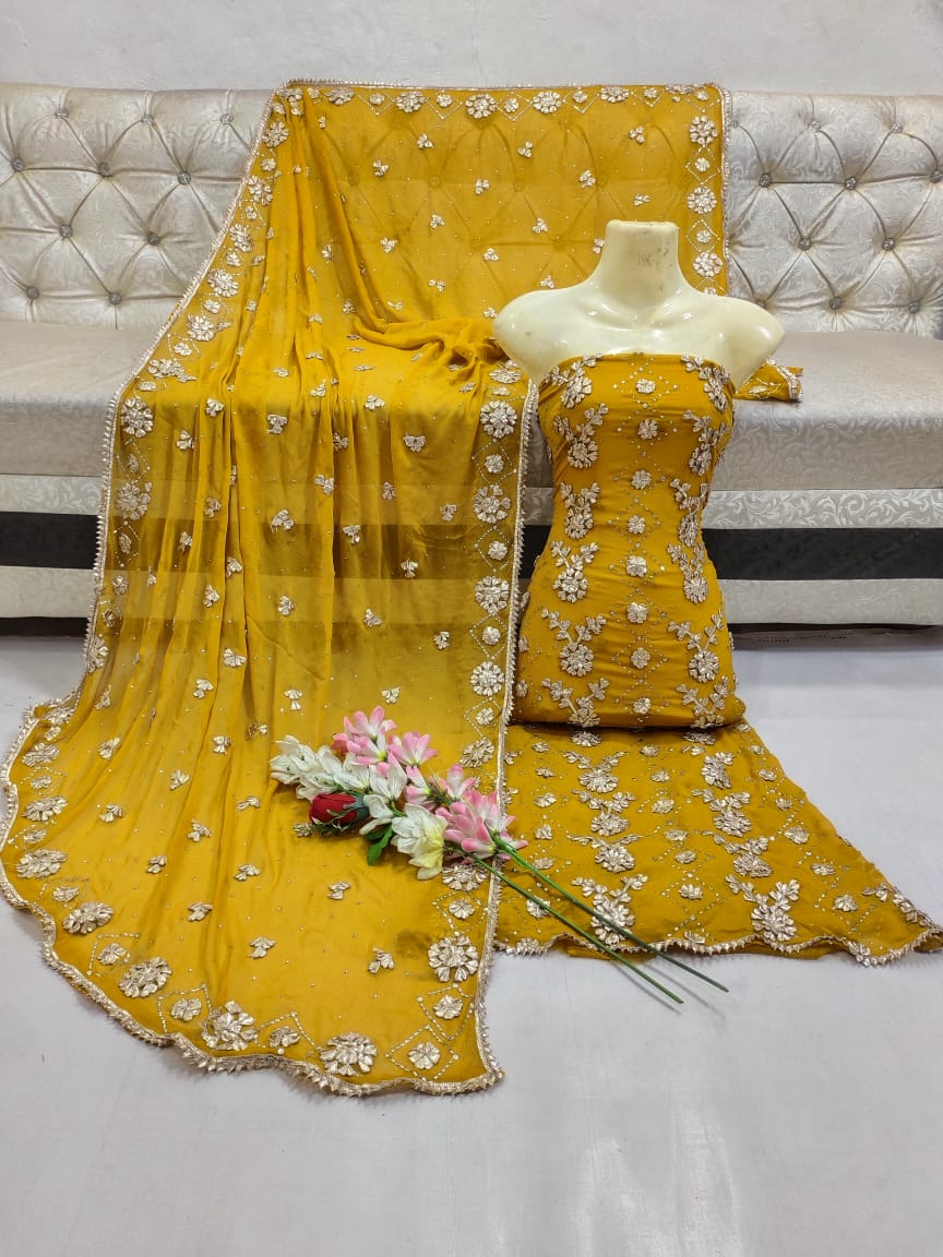 3-Piece Traditional Rose Gold Gotta Suit Along With Kamdani