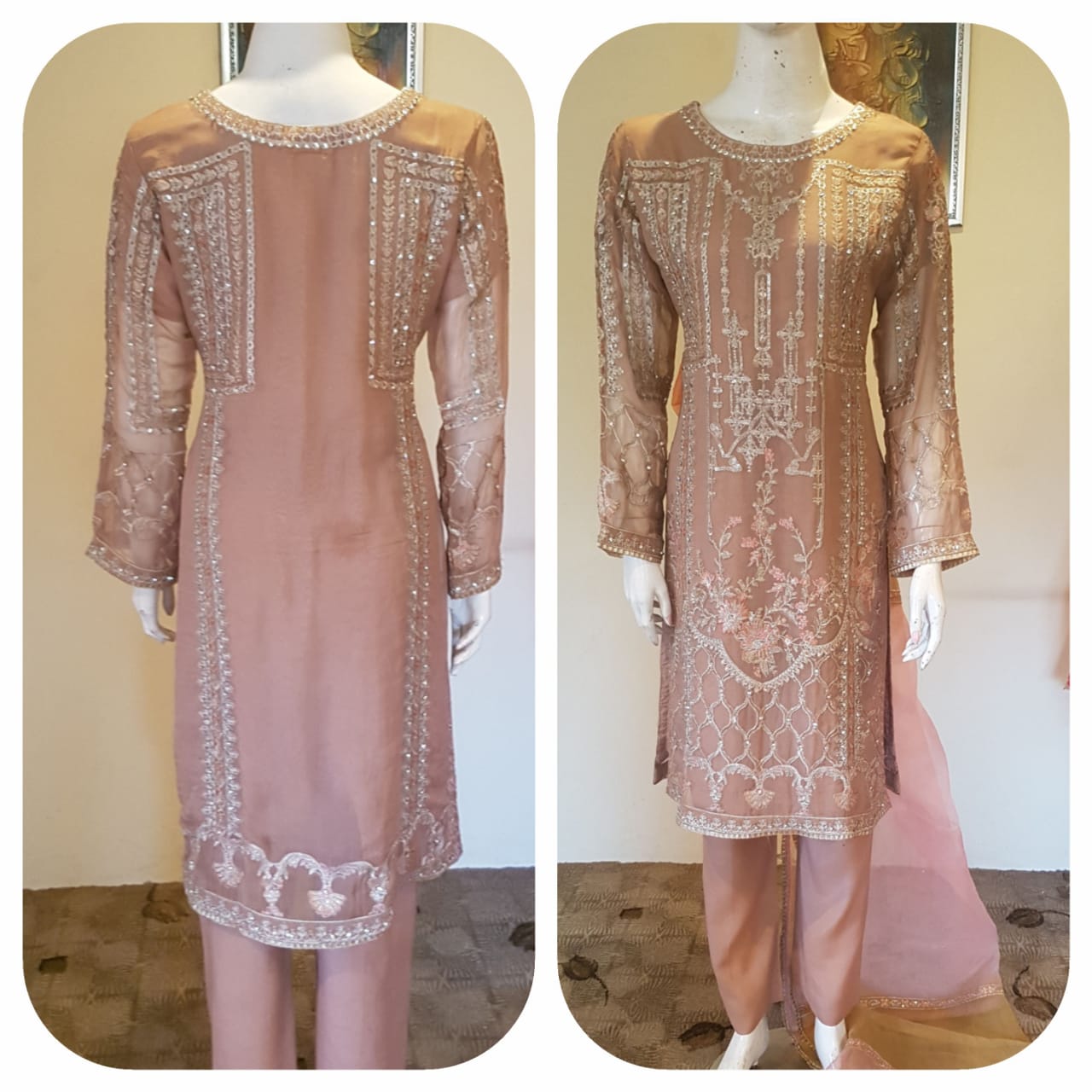 Beautiful pure chiffon 3-piece suit with silver embroidery.